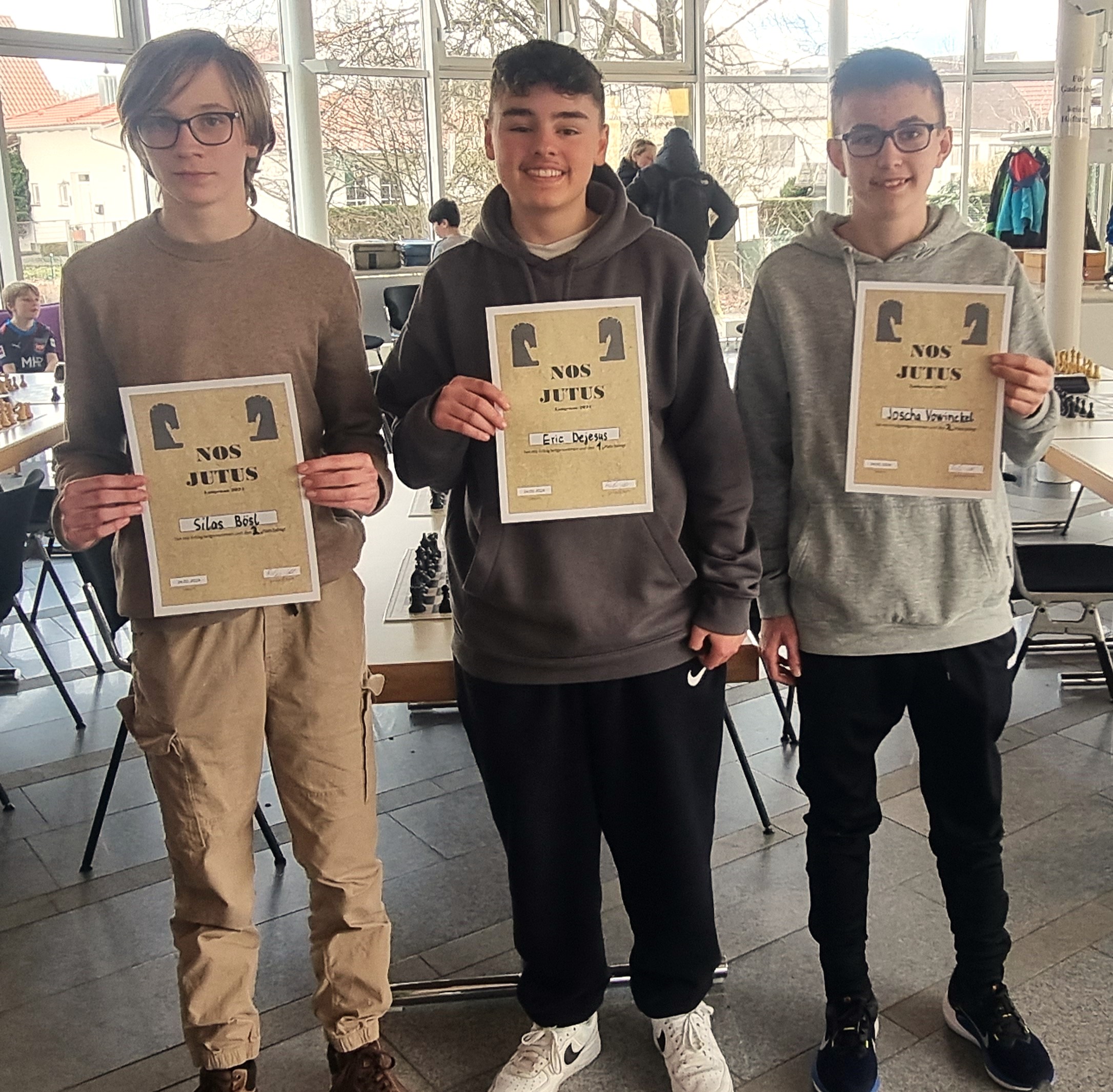 Am nächsten Tag sollte die Welt dann aber schon wieder viel anders aussehen: Die 1. Mannschaft fegte mit neun Siegen aus neun Begegnungen durch das Turnier und gewann das C-Finale sehr souverän. Simon Stork und Roland Wutzke konnten sich dabei auch noch über einen Brettpreis für die beste Leistung an den Brettern 1 und 3 mit jeweils 7,5 aus 9 Punkten freuen. Heiner Hörsch und Peter Hahnewald verpassten einen solchen zwar denkbar knapp um jeweils einen halben Punkt, spielten jedoch auch extrem stark an diesem Tag. Die 2. Mannschaft musste sich zwar schon in der zweiten Runde knapp gegen den späteren Zweitplatzieren, den SC Niederkirchen, geschlagen geben. Mehrere hohe Siege gegen die anderen Mannschaften sorgten aber dafür, dass auch die 2. Mannschaft ihre Finalgruppe gewinnen konnte. Auch in dieser Finalgruppe konnten wir zwei Brettpreise mit nach Hause nehmen: Die beiden Jugendlichen Luca Doll an Brett 1 und Elijah Keifert an Brett 2 waren mit jeweils 7,5 aus 9 Punkten maßgeblich am Erfolg der Mannschaft beteiligt und gewannen verdient den Brettpreis für das 1. und 2. Brett. An den Brettern 3 und 4 zeigten sich die Routiniers Bruno Schneider, Manfred Lachmayer und Wilfried Neef an diesem Tag auch souverän und sackten die restlichen für den ersten Platz benötigten Punkte ein. Alle Einzelergebnisse der beiden Finalgruppen können hier (C-Finale) und hier (D-Finale) gefunden werden.